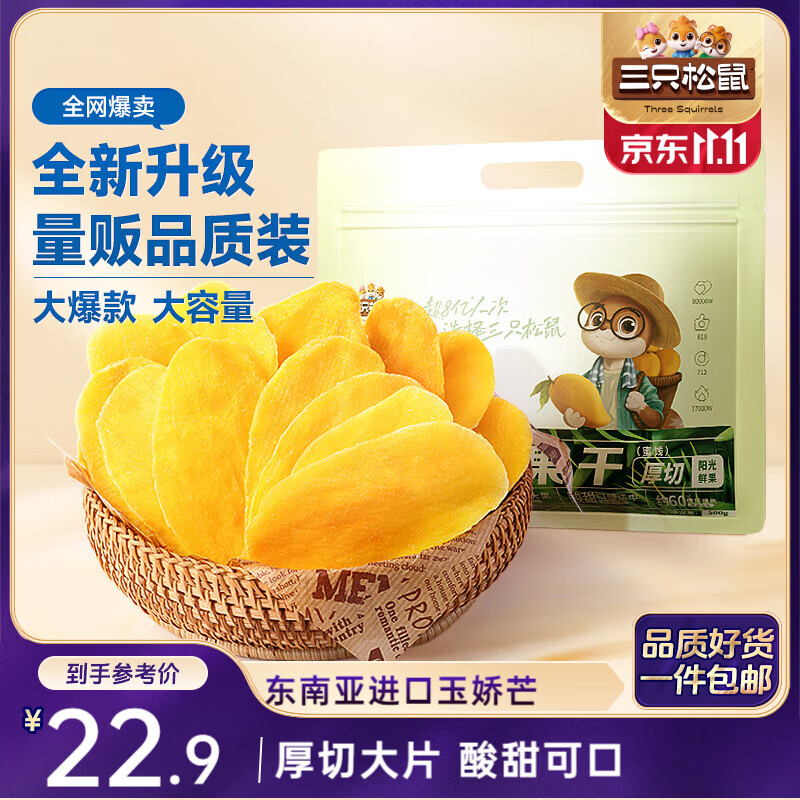 包邮 三只松鼠芒果干500g/袋 休闲零食水果干蜜饯果脯娱乐办公室小吃量贩装